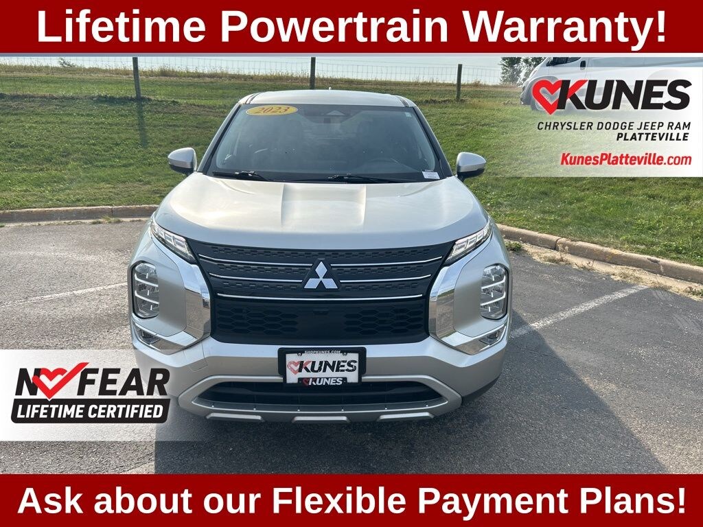 2023 Mitsubishi Outlander SE Special Edition Certified. CARFAX One-Owner. Gray 2.5L 4-Cylinder DOHC FWD ABS brakes, Alloy wheels, Electronic Stability Control, Front dual zone A/C, Heated door mirrors, Heated Front Bucket Seats, Heated front seats, Illuminated entry, Low tire pressure warning, Power Liftgate, Remote keyless entry, Traction control.
