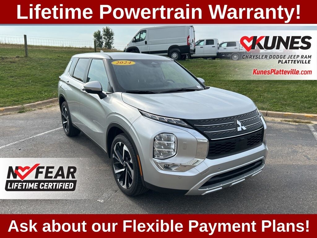 2024 Mitsubishi Outlander SE Certified. Priced below KBB Fair Purchase Price! Odometer is 29820 miles below market average! CARFAX One-Owner. Silver 2.5L 4-Cylinder DOHC 4WD 4WD, ABS brakes, Active Cruise Control, Alloy wheels, Electronic Stability Control, Front dual zone A/C, Heated door mirrors, Heated Front Bucket Seats, Heated front seats, Illuminated entry, Low tire pressure warning, Navigation System, Power Liftgate, Remote keyless entry, Traction control.