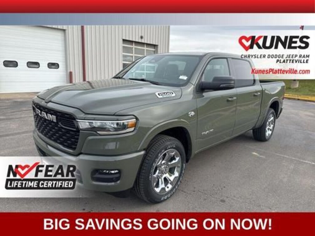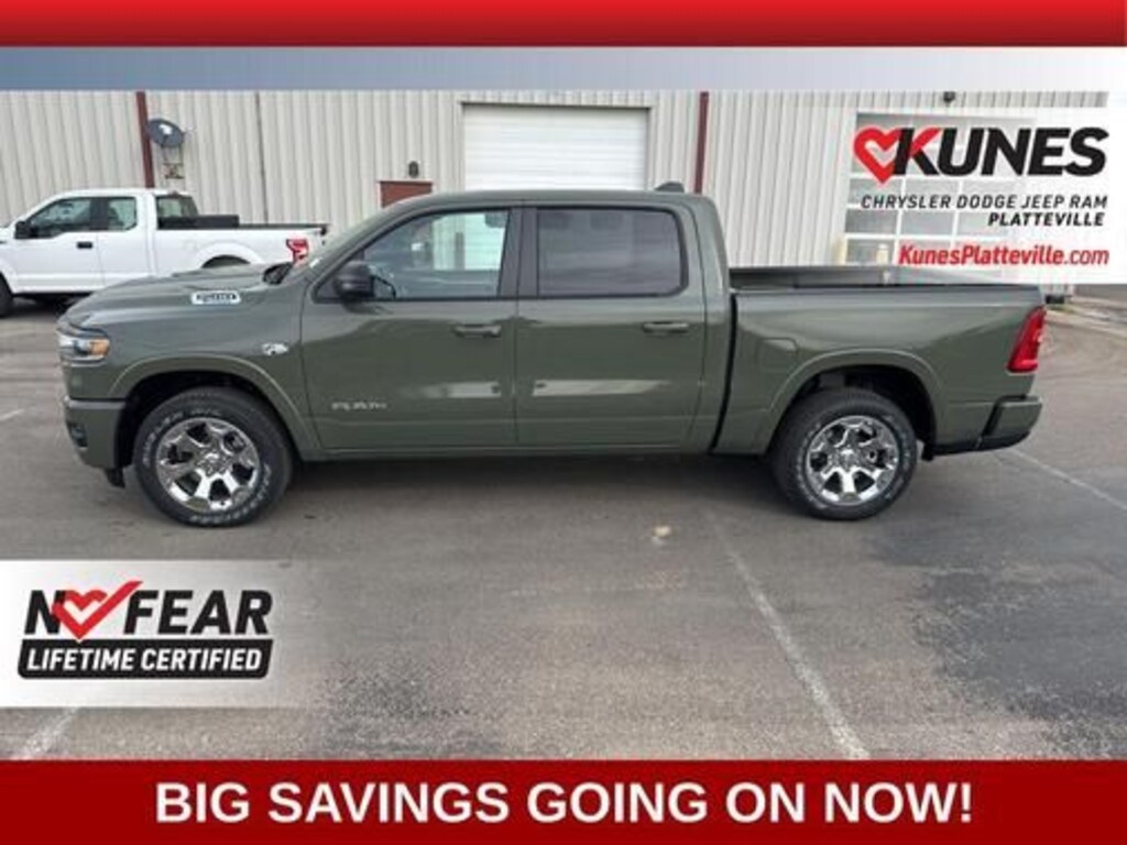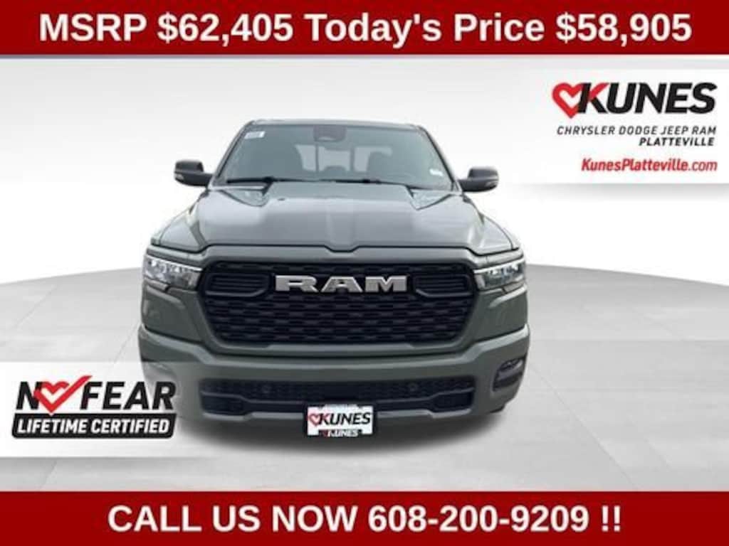 2026 Ram 1500 Big Horn/Lone Star Big Horn/Lone Star 4WD Canyon Lake 115V Auxiliary Power Outlet, 115V Auxiliary Rear Power Outlet, 12" Touchscreen Display, 2nd Row in Floor Storage Bins, 3 Rear Seat Head Restraints, 4 Way Front Headrests, 400W Inverter, 4G LTE Wi-Fi Hot Spot, 9 Amplified Speakers with Subwoofer, Air Conditioning ATC with Dual Zone Control, Apple CarPlay, Auto Power-Folding Mirrors, Auto-Dimming Exterior Driver Mirror, Auto-Dimming Rear-View Mirror, Big Horn Level 2 Equipment Group, Black Exterior Mirrors, Black Interior Accents, Black Premium Power Mirrors, Body Color Door Handles, Body Color Fender Flares, Body Color Front Bumper, Body Color Rear Bumper with Step Pads, Body Color Tailgate Handle, Bucket Seats, Center Console Parts Module, Cluster 7.0" TFT Color Display, Configurable Drive Mode, Connected Travel and Traffic Services, Connectivity - US/Canada, Convex Wide-Angle Exterior Mirror Insert, Deluxe Cloth Bucket Seats, Disassociated Touchscreen Display, Exterior Mirrors Courtesy Lamps, Exterior Mirrors with Heating Element, Exterior Mirrors with Supplemental Signals, Front Seat Back Map Pockets, Full Length Floor Console, Global Telematics Box Module, Glove Box Lamp, Google Android Auto, GPS Antenna Input, GPS Navigation, Grille Surround 1 Body Color Texture 1 Black, HD Radio, Heated Front Seats, Heated Steering Wheel, Integrated Center Stack Radio, Integrated Voice Command with Bluetooth, Leather Wrapped Steering Wheel, LED Dome Lamp with on/Off Switch, LED Footwell Lighting, Manual Adjust 4-Way Front Passenger Seat, Media Hub with 2 Charge Only USBs, Overhead LED Lamps, Power 2-Way Driver Lumbar Adjust, Power Adjust 8-Way Driver Seat, Power Adjustable Pedals, Premium Overhead Console, Quick Order Package 27Z Big Horn, Radio: Uconnect 5 Navigation with 12.0" Display, RAM Grille Badge - Chrome, Rear 60/40 Folding Seat, Rear Center Armrest, Rear Power Sliding Window, Rear Window Defroster, Remote Tailgate Release, Security Alarm, SiriusXM Radio Service, SiriusXM with 360L, Sport Appearance Package, Steering Wheel Mounted Audio Controls, Sun Visors with Illuminated Vanity Mirrors, Universal Garage Door Opener, USB Host Flip, Wheels: 20" x 9" Aluminum Chrome Clad. 8-Speed Automatic HEMI 5.7L V8 Multi Displacement VVT eTorque