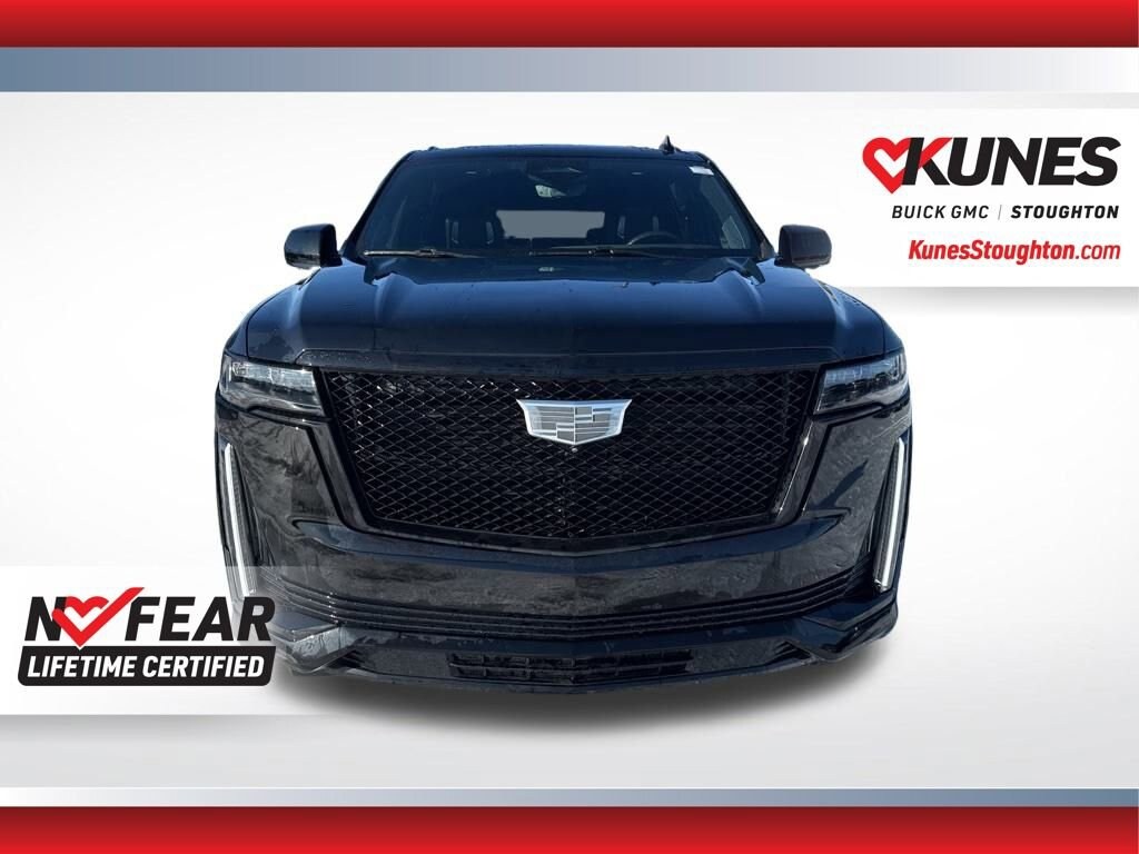 **NAVIGATION**, **ADAPTIVE CRUISE**, **ADVANCED SAFETY Tech**, **DUAL PANORAMIC SUNROOF**, **SUNROOF**, **REMOTE START**, **BACKUP CAMERA**, **SIRIUSXM RADIO**, **REAR PARK ASSIST**, **3RD ROW SEATING**, **HEATED SEATS**, **COOLED SEATS**, **LEATHER SEATS**, **POWER REAR LIFTGATE**, **4 WHEEL DRIVE**, **RUNNING BOARDS**, AWD, 2-Presets Memory For Driver Seat Adjuster, 2-Speed Active Transfer Case, 3rd row seats: split-bench, A/V remote, Adaptive Cruise Control, Air Ride Adaptive Suspension, AKG Studio Reference 36-Speaker Audio System, Apple CarPlay/Android Auto, Audio memory, Auto tilt-away steering wheel, Auto-dimming door mirrors, Automatic Seat Belt Tightening, Automatic temperature control, Body-Color Door Handles, Compass, Delay-off headlights, Door auto-latch, Door Lock & Latch Shields, Driver vanity mirror, Electronic Limited-Slip Differential, Emergency communication system: OnStar and Cadillac connected services capable, Enhanced Automatic Emergency Braking, Enhanced Automatic Parking Assist, Extra Capacity Cooling System, Floor Console w/Covered Storage, Four wheel independent suspension, Front Auxiliary 12-volt Power Outlet, Front Center Armrest w/Storage, Front dual zone A/C, Front reading lights, Full Semi-Aniline Leather Seat Trim, Genuine wood console insert, Genuine wood dashboard insert, Genuine wood door panel insert, Glass Breakage Sensor, Gloss Black Escalade Nameplate (LPO), HD Radio, Headphones, Heated & Ventilated Driver & Front Passenger Seats, Heated rear seats, Heated steering wheel, Heavy-Duty Trailering Package, Hitch Guidance w/Hitch View, Illuminated entry, Illuminating Front & Rear Sill Plates, Integrated Trailer Brake Controller, Leather steering wheel, Low tire pressure warning, Monochrome Cadillac Emblems (LPO), Occupant sensing airbag, Onyx Package (LPO), Outside temperature display, Overhead airbag, Overhead console, Passenger door bin, Passenger vanity mirror, Platinum Interior Trim, Power Lumbar Massage Driver Seat, Power Lumbar Massage Front Passenger Seat, Power moonroof, Power Panoramic Tilt-Sliding Sunroof, Preferred Equipment Group 1SH, Radio data system, Radio: AM/FM w/Navigation, Rear anti-roll bar, Rear audio controls, Rear Camera Mirror, Rear Camera Mirror Washer, Rear Cross Traffic Alert, Rear reading lights, Rear Seat Entertainment System, Rear window wiper, Reconfigurable Full-Color Head-Up Display, Remote keyless entry, Reverse Automatic Braking, Running Board Assist Steps, SiriusXM w/360L, Smart Trailer Integration Indicator, Soft Closing Front & Rear Doors, Speed control, Split folding rear seat, Spoiler, Steering wheel mounted audio controls, Tachometer, Telescoping steering wheel, Theft-Deterrent Alarm System, Tilt steering wheel, Touring Package, Trailer Side Blind Zone Alert, Trailer Tire Pressure Monitoring System, Trailering Assist Guidelines, Trip computer, Turn signal indicator mirrors, Vehicle Inclination Sensor, Vehicle Interior Movement Sensor, Voltmeter, Wheel Locks, Wheels: 22 12-Spoke Gloss Black Alloy (LPO), Wheels: 22 12-Spoke Polished Alloy, Wheels: 22 Interim (LPO), Wired Auxiliary Trailer Camera (LPO). Sport Platinum