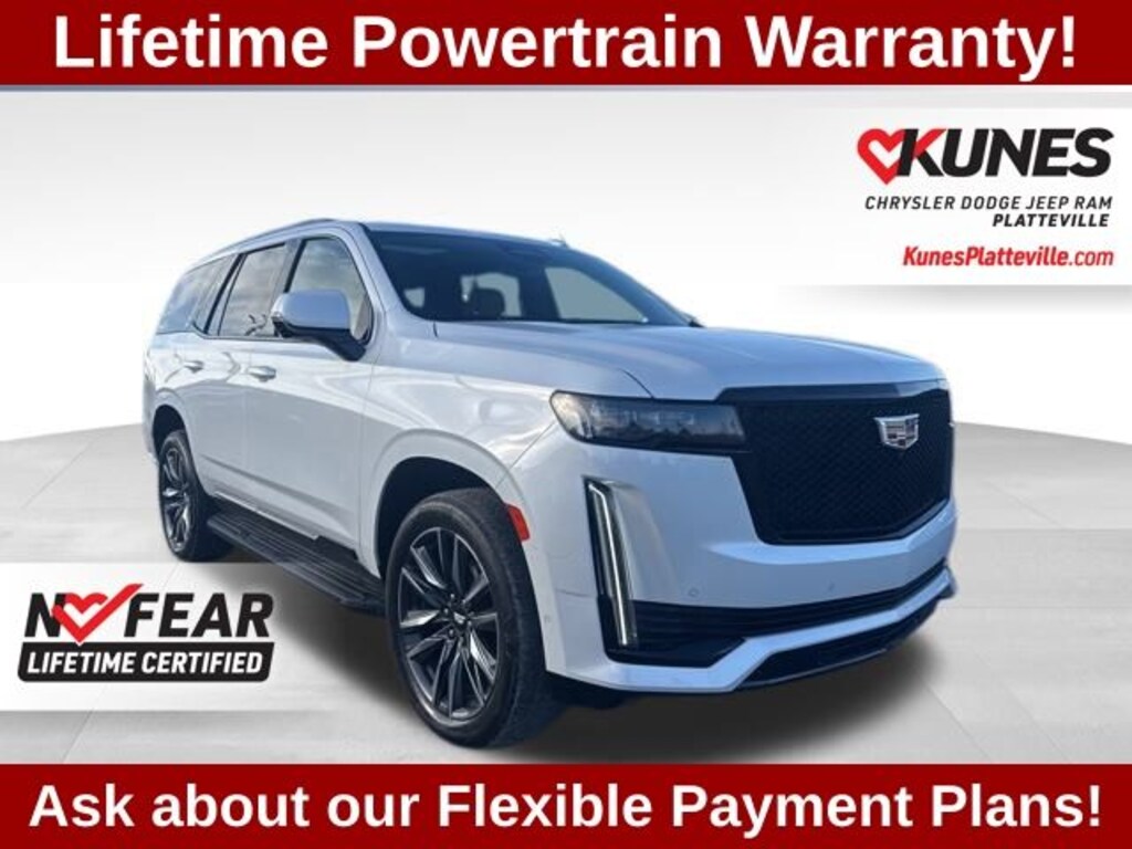2022 Cadillac Escalade Sport Certified. Recent Arrival! CARFAX One-Owner. Crystal White Tricoat 6.2L V8 4WD ** BLUETOOTH **, ** BACKUP CAMERA **, ** REMOTE START **, ** APPLE CAR PLAY / ANDROID AUTO **, ** HEATED SEATS **, ** 3RD ROW SEATING **, ** 2ND ROW BUCKETS **, ** PUSH BUTTON/KEYLESS START **, ** RUNNING BOARDS **, **BLIND SPOT MONITOR**, ** REAR PARK ASSIST **, ** COOLED SEATS **, ** LEATHER SEATS **, ** POWER REAR LIFTGATE **, ** 4 WHEEL DRIVE **, ** 7 PASSENGER SEATING **, 4WD, Brandy With Very Dark Atmosphere Accents Leather, Adaptive Cruise Control, AKG Studio 19-Speaker Audio System, Automatic Seat Belt Tightening, Automatic Stop/Start, Body-Color Door Handles, Door Lock & Latch Shields, Electronic Limited-Slip Differential, Enhanced Automatic Emergency Braking, Enhanced Automatic Parking Assist, Glass Breakage Sensor, Hitch Guidance w/Hitch View, Integrated Trailer Brake Controller, Power Panoramic Tilt-Sliding Sunroof, Preferred Equipment Group 1SC, Rear Camera Mirror, Rear Camera Mirror Washer, Rear Cross Traffic Alert, Reconfigurable Full-Color Head-Up Display, Reverse Automatic Braking, Running Board Assist Steps, Smart Trailer Integration Indicator, Start/Stop System Disable Button, Theft-Deterrent Alarm System, Trailer Side Blind Zone Alert, Vehicle Inclination Sensor, Vehicle Interior Movement Sensor.