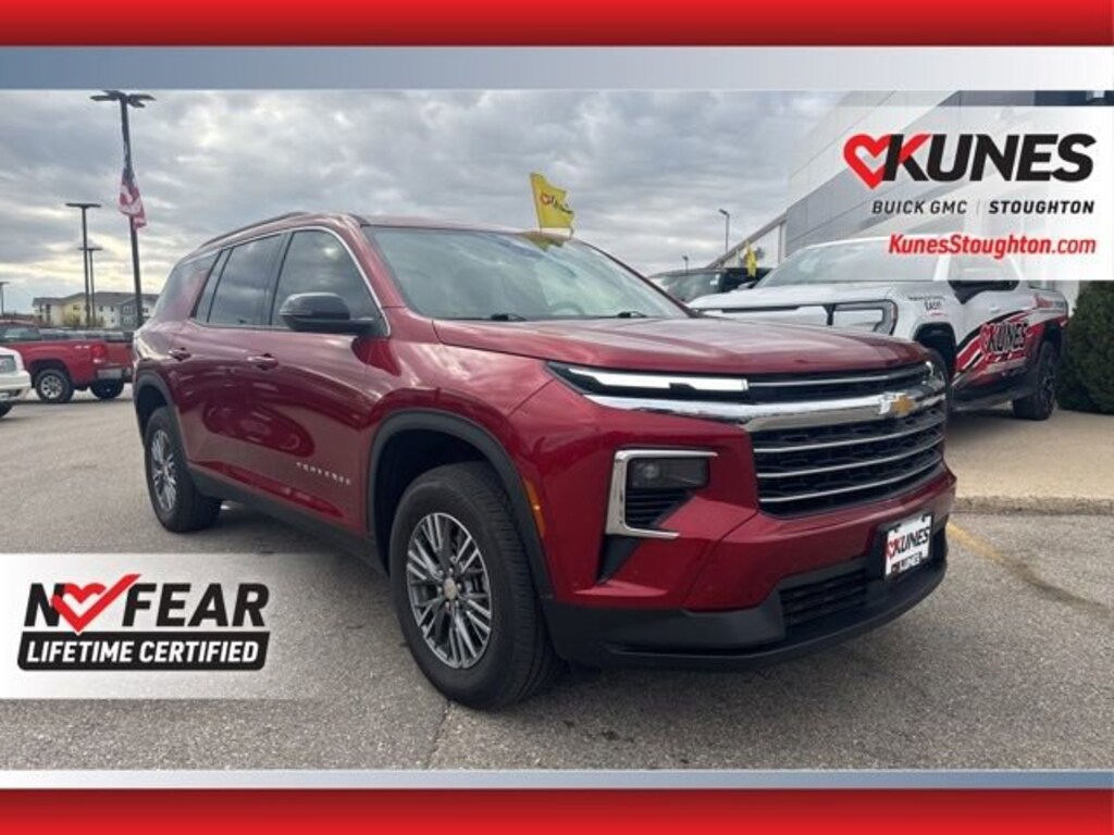 2024 Chevrolet Traverse LT 2LT Radiant Red Tintcoat AWD 2.5L DOHCRecent Arrival! CARFAX One Owner.NO FEAR LIFETIME CERTIFIED PREOWNED **Over $2,895 of value at no cost!LIFETIME WARRANTY!3 Day Exchange Policy!Complimentary powertrain warranty with ability to upgrade to fully comprehensive coverage and/or extend up to 125,000 miles!125+ Point Inspection by our factory trained ASE Certified technicians and reconditioned to the highest standards.Complimentary AutoCheck History ReportComplimentary AutoCheck Buyback ProtectionFinancing for Everyone - Guaranteed credit approval regardless of credit history!Over 30 lenders who compete to get you the best financing termsNo payments for up to 90 days!Weekly, Bi-Weekly, and Monthly Payment Options for all buyers!First Free Oil Change!Trade anytime policy - cars, trucks, boats, RVs, motorcycles - as long as we don't have to feed it, you can trade it! Trailering package with tow hitch Floor liner package with enhanced mats Radiant Red Tintcoat exterior Adaptive cruise control Heated front seats and heated steering wheel Blind spot monitoring Rear parking aids with backup camera and aerial surround view Lane keeping assist and lane departure warning Power driver seat and adjustable lumbar Keyless entry and push-button start Power liftgate with remote release 11-inch driver display Tri-zone automatic climate control Third-row seating and second-row captain’s chairs Cloth seats with seat trim Aluminum wheels and privacy glass Apple CarPlay, Android Auto, Bluetooth WiFi hotspot, satellite radio, and remote start All-wheel drive and 2.5L turbo engine Multiple airbags, front collision warning, and cross-traffic alert