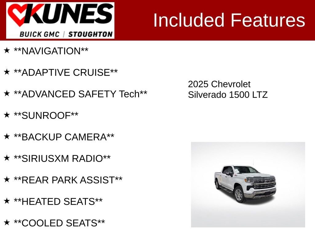 2025 Chevrolet Silverado 1500 LTZ 4WD Summit White Clean CARFAX. Certified.