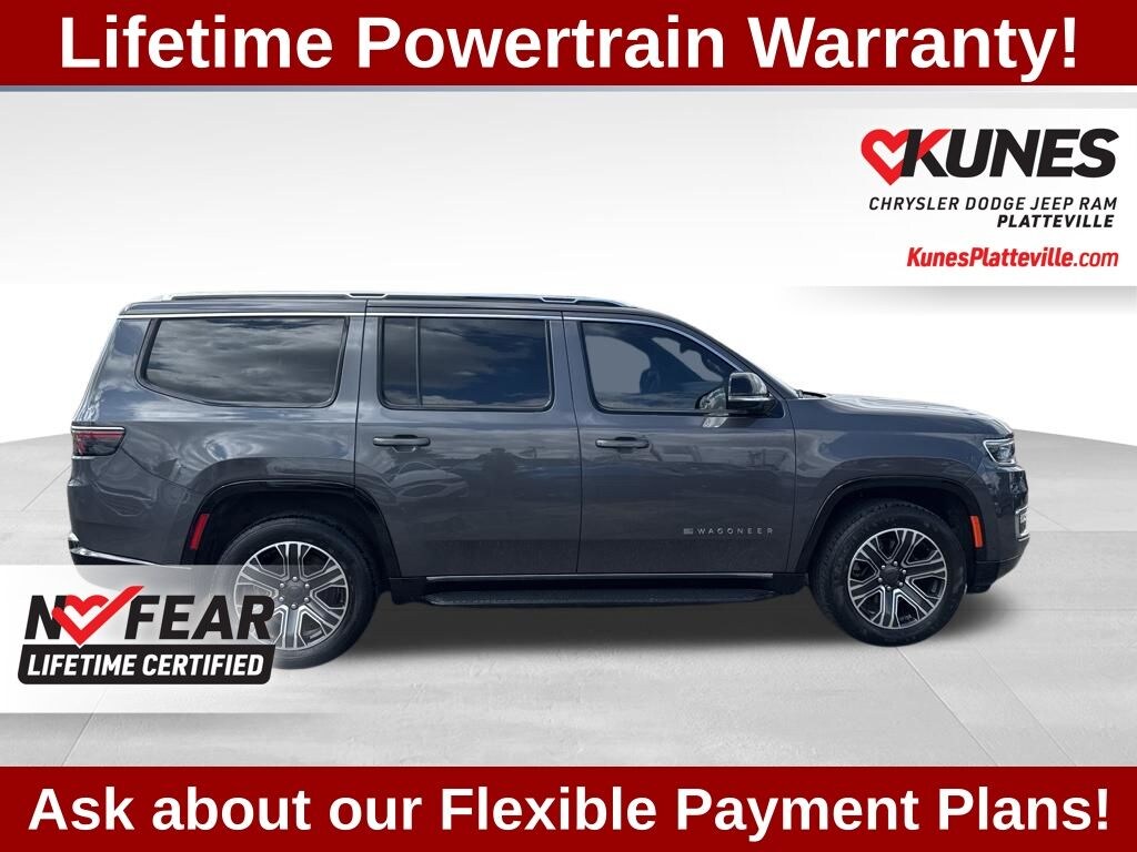 2023 Jeep Wagoneer Series II Certified. Recent Arrival! Odometer is 1467 miles below market average! CARFAX One-Owner. Baltic Gray Metallic Clearcoat 3.0L I6 4WD ** BLUETOOTH **, ** BACKUP CAMERA **, ** REMOTE START **, ** NAVIGATION **, ** APPLE CAR PLAY / ANDROID AUTO **, ** HEATED SEATS **, ** 3RD ROW SEATING **, ** 2ND ROW BUCKETS **, ** PUSH BUTTON/KEYLESS START **, ** RUNNING BOARDS **, **TOW PACKAGE**, **BLIND SPOT MONITOR**, ** REAR PARK ASSIST **, ** SIRIUSXM RADIO **, ** ADVANCED SAFETY Tech **, ** LEATHER SEATS **, ** POWER REAR LIFTGATE **, ** ALL WHEEL DRIVE **, ** 7 PASSENGER SEATING **, ** LUXURY PACKAGE **.