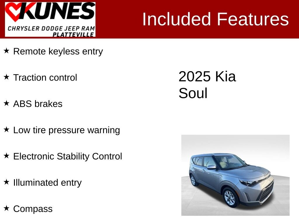 2025 Kia Soul LX Certified. Recent Arrival! Odometer is 2171 miles below market average! CARFAX One-Owner. Clean CARFAX. Silver 2.0L I4 DOHC FWD ABS brakes, Compass, Electronic Stability Control, Illuminated entry, Low tire pressure warning, Remote keyless entry, Traction control.