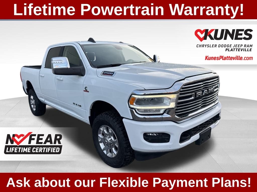 2024 Ram 2500 Laramie Certified. Recent Arrival! CARFAX One-Owner. Clean CARFAX. Bright White Clearcoat Cummins 6.7L I6 Turbodiesel 4WD ** BLUETOOTH **, ** BACKUP CAMERA **, ** REMOTE START **, ** NAVIGATION **, ** APPLE CAR PLAY / ANDROID AUTO **, ** HEATED SEATS **, ** PUSH BUTTON/KEYLESS START **, **TOW PACKAGE**, **BLIND SPOT MONITOR**, ** REAR PARK ASSIST **, ** SIRIUSXM RADIO **, ** LEATHER SEATS **, ** 4 WHEEL DRIVE **, 12" Touchscreen Display, 2nd Row In Floor Storage Bins, 4G LTE Wi-Fi Hot Spot, Alexa Built-In, Apple CarPlay, Auto Adjust In Reverse Exterior Mirrors, Auto Dim Exterior Mirror, Auto High Beam Headlamp Control, Auto Power-Folding Mirrors, Auto-Dimming Exterior Passenger Mirror, Blind Spot & Cross Path Detection, Center Hub, Chrome Exterior Mirrors, Connected Travel & Traffic Services, Connectivity - US/Canada, Disassociated Touchscreen Display, Exterior Mirrors Courtesy Lamps, Exterior Mirrors w/Heating Element, Exterior Mirrors w/Memory, Exterior Mirrors w/Supplemental Signals, Foam Bottle Insert (Door Trim Panel), For Details, Visit DriveUconnect.com, For More Info, Call 800-643-2112, Forward & Reverse Utility Lights, Front LED Fog Lamps, Global Telematics Box Module (TBM), Google Android Auto, GPS Antenna Input, GPS Navigation, HD Radio, Integrated Voice Command w/Bluetooth, Laramie Level 1 Equipment Group, Leather Trim 40/20/40 Bench Seat, LED Reflector Headlamps, LED Tail Lamps, Mirror Running Lights, Off-Road Information Pages, ParkSense Front/Rear Park Assist System, Power Adjust Mirrors, Power Adjustable Convex Aux Mirrors, Power Adjustable Pedals w/Memory, Power Heated Fold Telescopic Mirrors w/Memory, Power Telescoping Mirrors, Quick Order Package 2HH Laramie, Radio: Uconnect 5 Nav w/12.0" Display, Rain Sensitive Windshield Wipers, Rear Power Sliding Window, Rear Window Defroster, Remote Tailgate Release, Selectable Tire Fill Alert, SiriusXM Radio Service, SiriusXM w/360L, Trailer Tow Pages, Wheels: 18" x 8.0" Polished Aluminum.